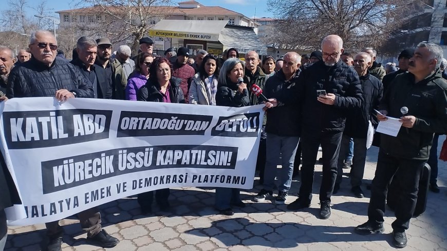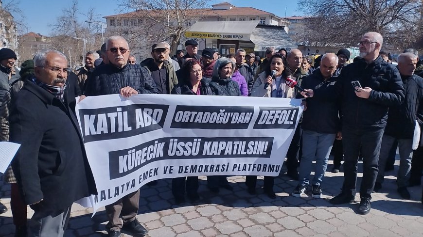 Malatya Emek ve Demokrasi Platformu, ABD ve İsrail’in İran’a yönelik saldırılarını protesto etmek amacıyla Turan Emeksiz Caddesi üst kavşağında bir araya geldi. Yoğun katılımın olduğu açıklamada sert mesajlar verildi; konuşmalarda savaşın bölgesel bir felakete dönüşebileceği uyarısı yapıldı. Platform bileşenleri tarafından düzenlenen eylemde, “Katil ABD Orta Doğu’dan defol”, “Haydut ABD, barbar İsrail”, “Kahrolsun mollalar, yaşasın özgürlük”, “Yaşasın halkların kardeşliği” sloganları atıldı. Açıklamaya Emek Partisi Gaziantep Milletvekili Sevda Karaca, Sol Parti Sözcüsü İlknur Başer ve KESK Kadın Sekreteri Döne Gevher de katıldı. Alan çevresinde güvenlik önlemleri alınırken, protesto basın açıklaması ve konuşmaların ardından olaysız şekilde sona erdi.